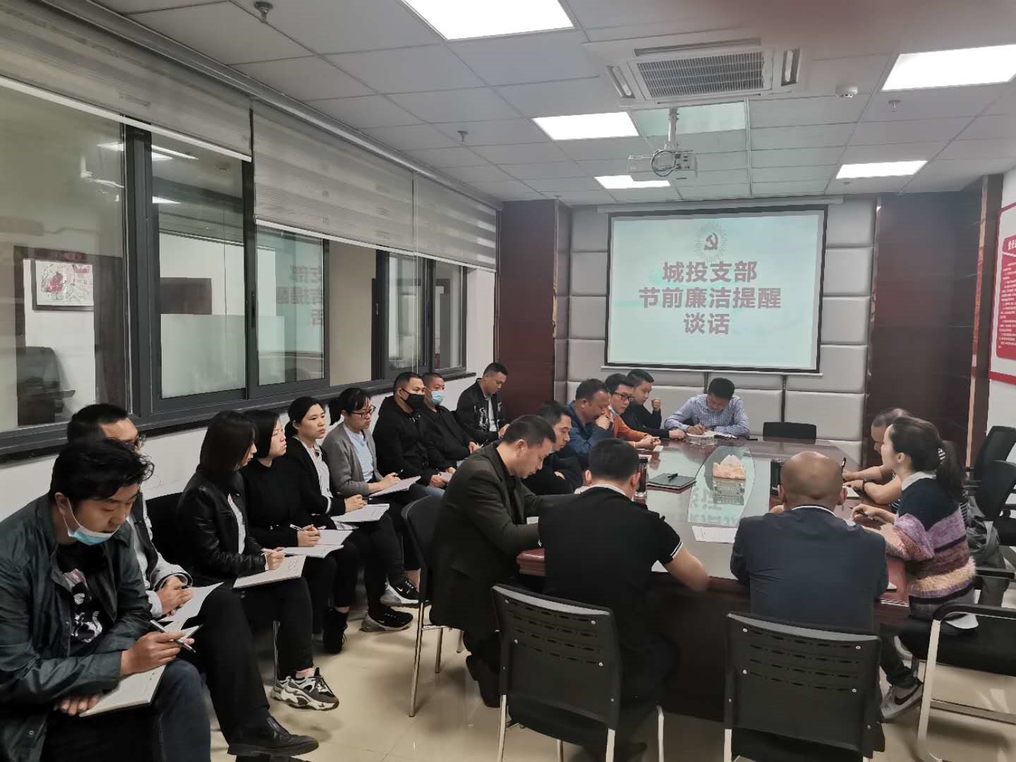 2020年5月22日,城投支部召集支部全體黨員、中層及以上領(lǐng)導(dǎo)干部、重點崗位人員開展2020年度警示...