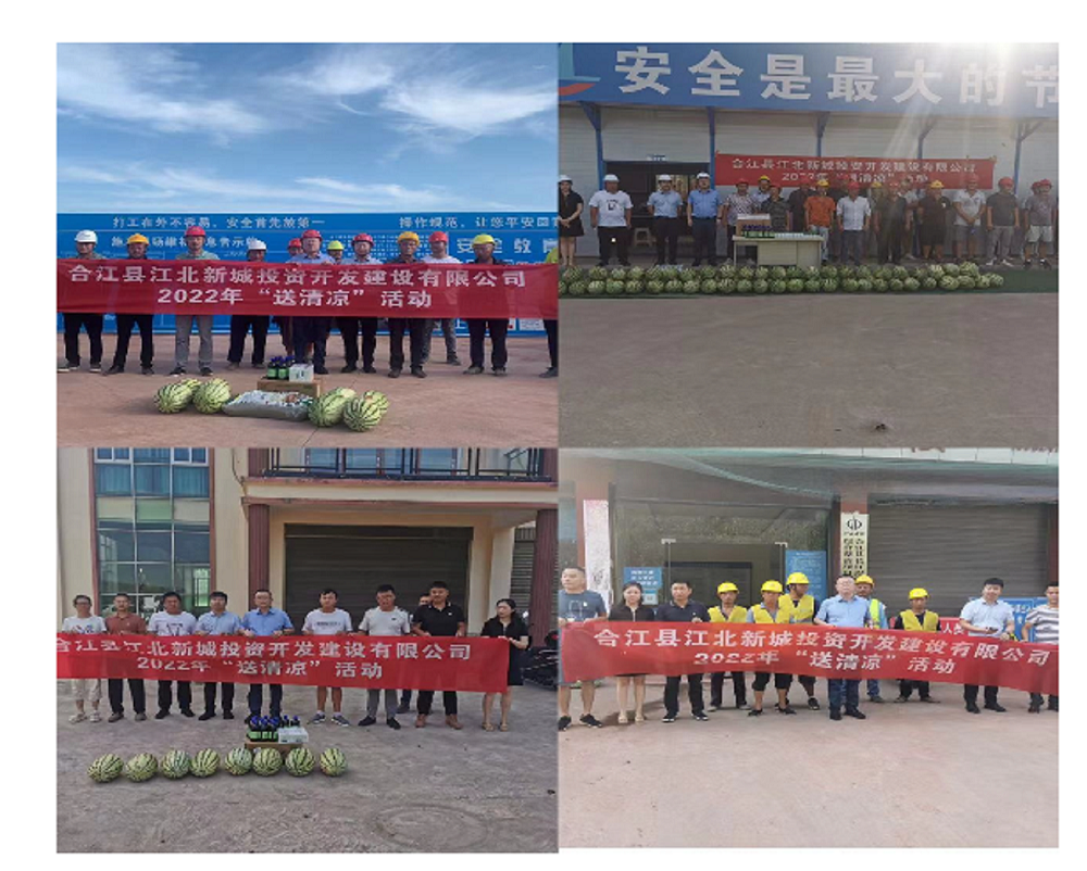 為了切實保障堅守在一線崗位的員工所需, 防止炎熱夏 日高溫中暑, 確保一線工作人員擁有良好的工作狀態(tài), 8 月 8 日 , 江北公司組織開展走一線 “ 送 清 涼 ” 活動 , 為奮戰(zhàn)在生產(chǎn)一線的員工發(fā)放防暑降溫用品。 此次送清涼活動, 分別走訪了學(xué)府家園(一期) 、合江縣江北文化綜合體建設(shè)項目 (中學(xué)及配套道路) 、合江縣長江岸線江北段水環(huán)境綜合整 治項目 (一期) 三標段等一線崗位, 將防暑降溫物品親自送到各個崗位的員工手上, 讓他們切實感受到江北公司的 “清 涼和關(guān)愛”。 在發(fā)放慰問品的同時, 也再三叮囑一線人員要 注意防暑降溫, 合理避開高溫作業(yè)時間, 做好防暑應(yīng)急措施。